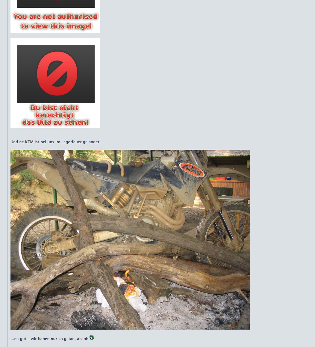 Und ne KTM ist bei uns im Lagerfeuer gelandet: