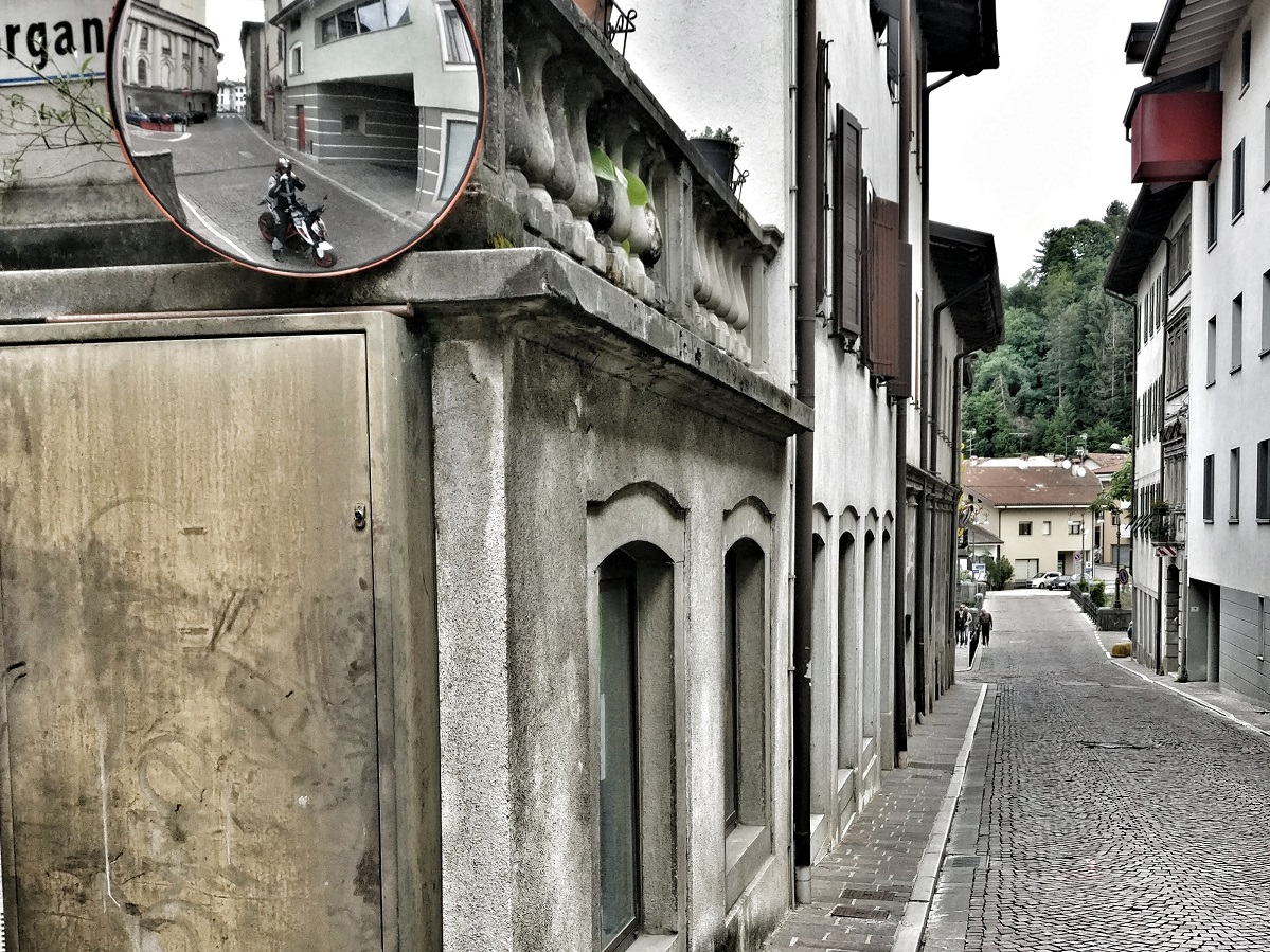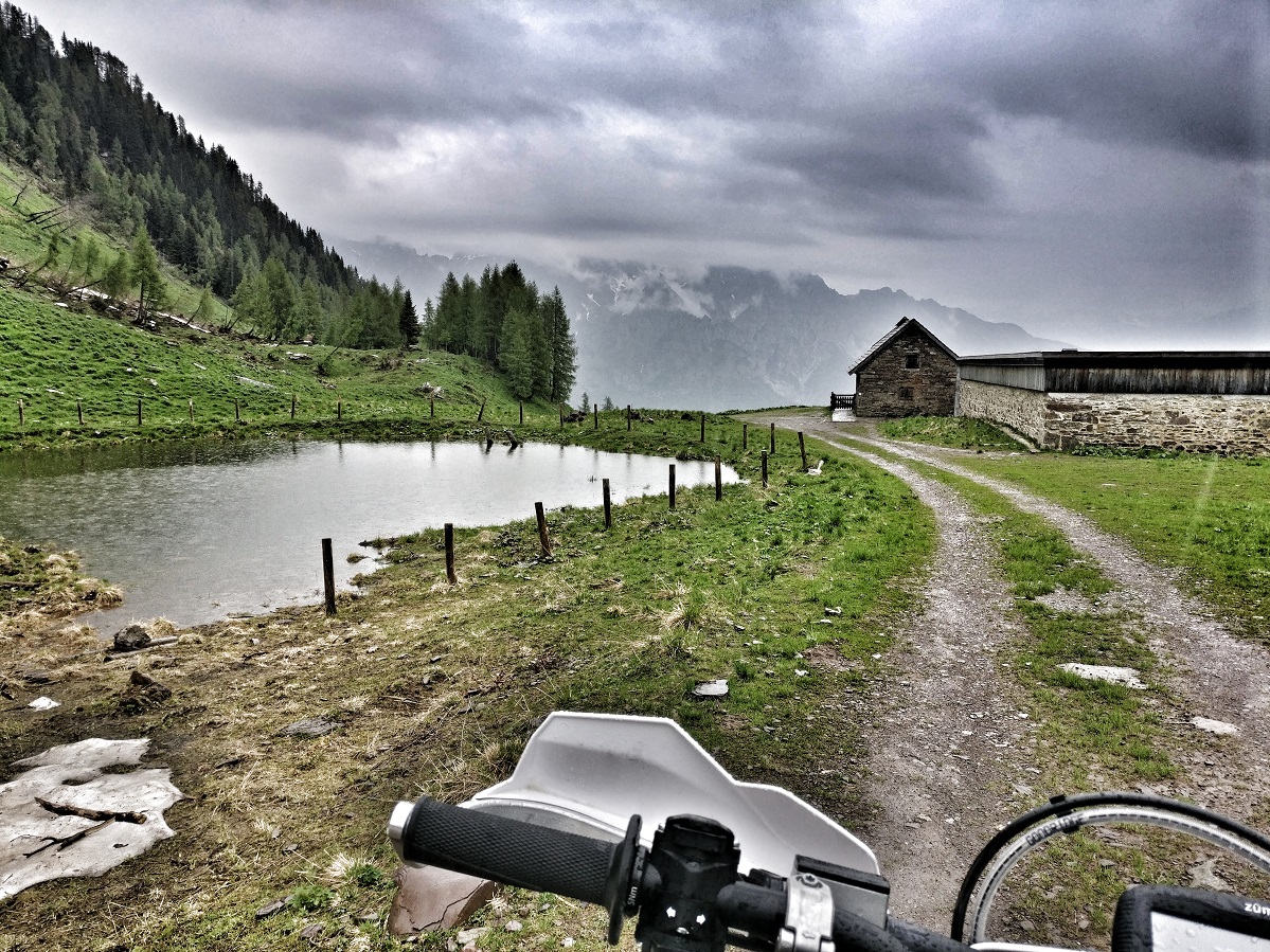 So ging es gleich Morgens, nachdem wir mit Schafen gefrühstückt haben, um 09.00 Uhr los.... Nach einem kurzen Spiegelbild, 80% feuchten/nassen Straßen, allgegenwärtigen Mäharbeiten (reichlich Gras auf der Straße, habe ich es doch tatsächlich bis zum Mangart geschafft...