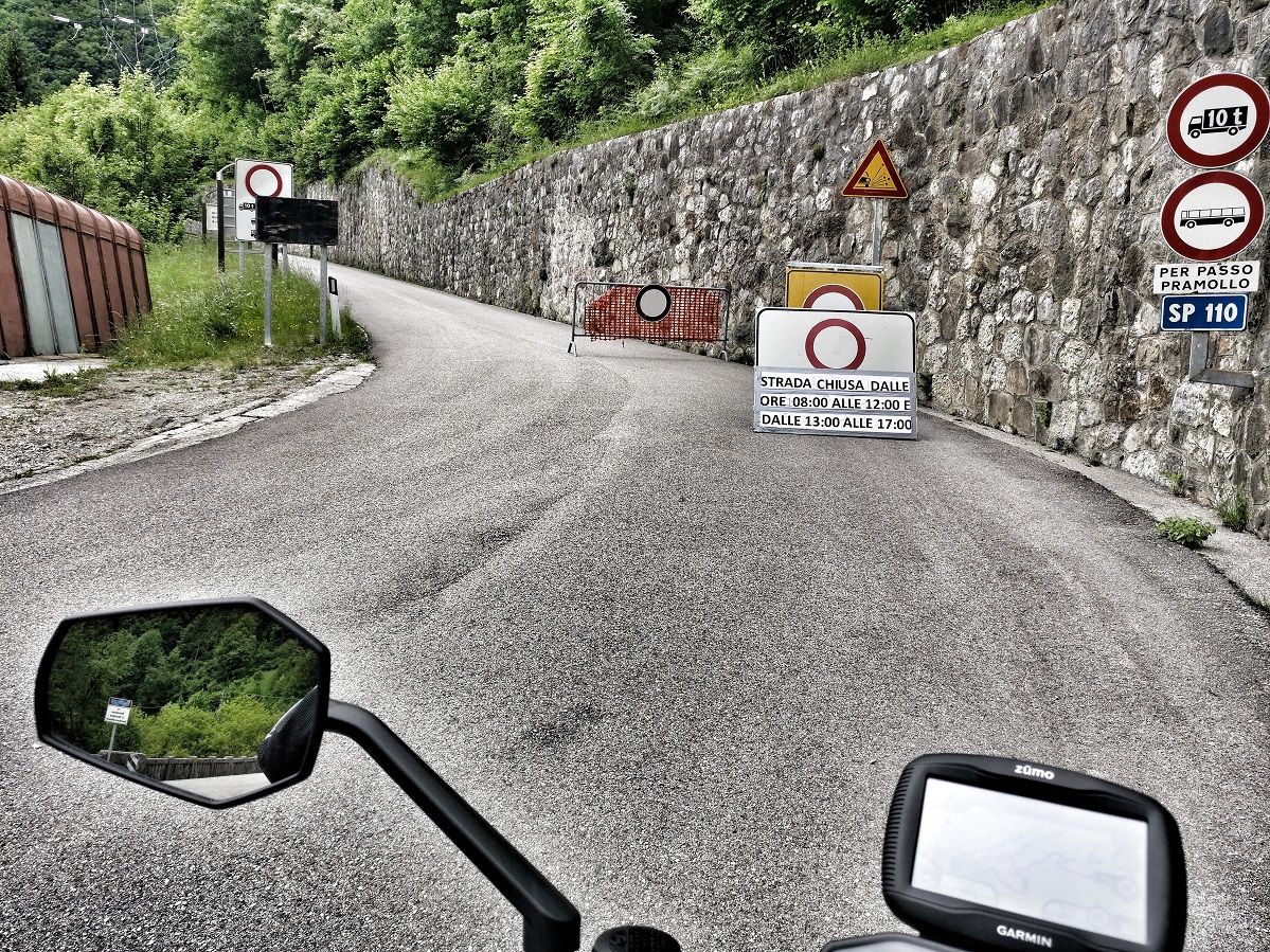 Für den Heimweg habe ich mir noch den Nassfeldpass als Sackgasse eingebaut... Unten stand wieder so ein komisches rundes Verkehrsschild mit irgendwelchen Zeitfenstern...