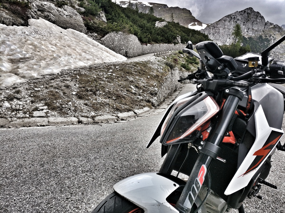 Da ich noch ein paar Kurven schwingen wollte, fuhr ich auf der österreichischen Seite wieder runter... so lange, bis da wieder dieser kleine rote Balken im Display zum Nachtanken ermahnte...