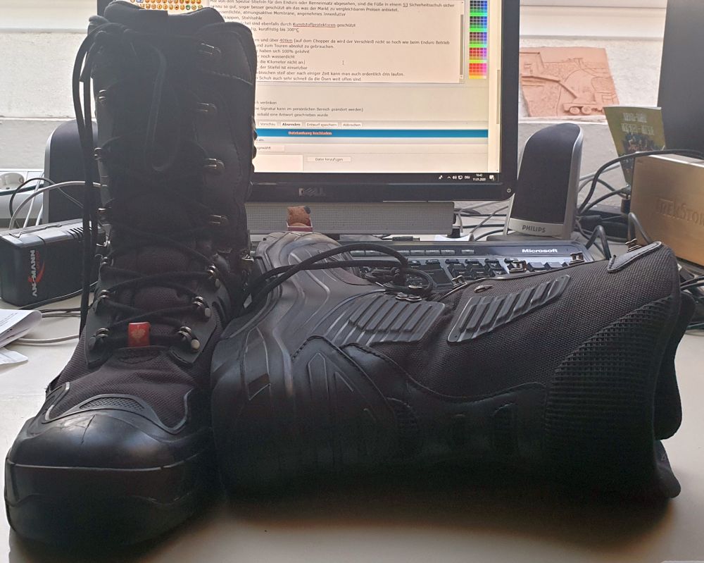 Mal von den Spezial-Stiefeln für den Enduro oder Renneinsatz abgesehen, sind die Füße in einem S3 Sicherheitsschuh sicher genau so gut, sogar besser geschützt als das was der Markt zu vergleichbaren Preisen anbietet.