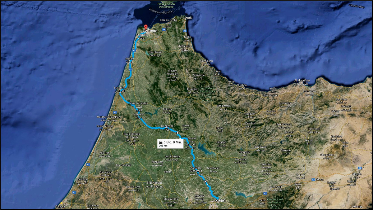 Gegen siebzehn Uhr fahren wir bei Asilah auf die Autobahn Richtung Tanger. Nach ca. 40 Kilometern erreichen wir Tanger mitten in der Rush Hour. Die letzen 25 Kilometer bis zum Hotel kommen wir nur im Schneckentempo vorwärts. Erst jetzt nehmen wir die riesige Dimension der Stadt wahr. Beim ankommen am ersten Tag haben wir eigentlich nur die Altstadt erlebt und die neue Stadt gar nicht realisiert. Die letzten Kilometer kosten ziemlich Nerven, an Pascal dran zu bleiben ist nicht einfach im dichten Gewusel. So gut es geht versucht er mich vorzuwarnen wo es langgeht. Schliesslich finden wir unser Hotel wieder obwohl das Navi uns woanders durchlotsen will. Zum Schluss gönnen wir uns noch einmal marokkanisches Essen, leider fast zu viel davon und zu später Stunde. So schlafen wir beide mehr schlecht als recht, in den Bäuchen rumpelt es und wir starten müde und alles andere als ausgeruht in den nächsten Morgen.