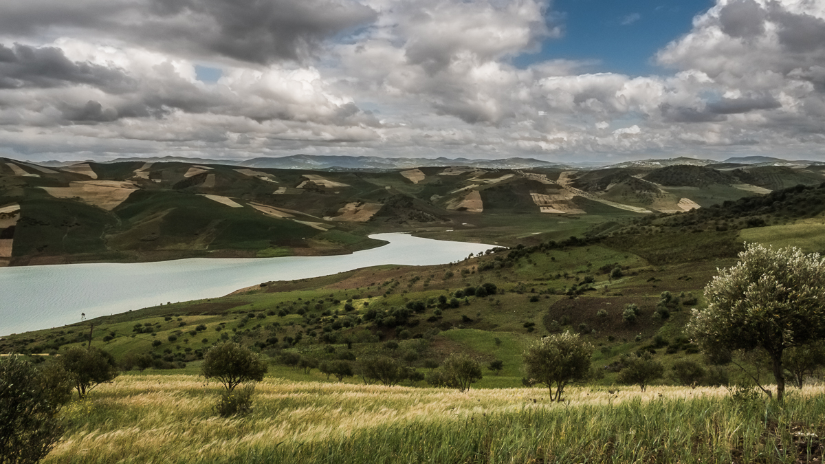 Trotz des tollen Frühstücks ist die Stimmung beim Aufbruch eher etwas bedrückt. Diesmal fällt es auch Pascal, der sonst immer gerne wieder nachhause fährt, etwas schwer zu akzeptieren dass dies unser letzter Tag in diesem tollen Land ist. Wir werden aber mit einer wunderschönen Fahrt durch den grünen Norden Marokkos getröstet. Wir fahren auf kleinen Strässchen durch eine liebliche Gegend, welche mich sehr an Mittelitalien erinnert. Weiche Hügel, Weizenfelder, Obstbäume, Seen. Grün in allen Tönen.