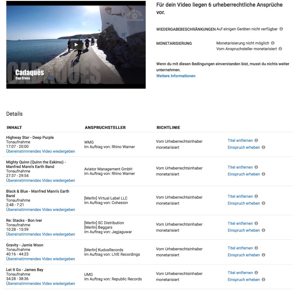 Seit die Gema und Youtube sich geeinigt haben läuft folgendes ab wenn ich ein Video bei Youtube hochlade.