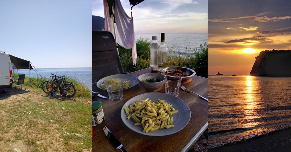 An der Küstenstraße lang, vorbei an „Bar“……..und an unsrem Strandstellplatz vom Pfingsturlaub rollte ich auch vorbei.