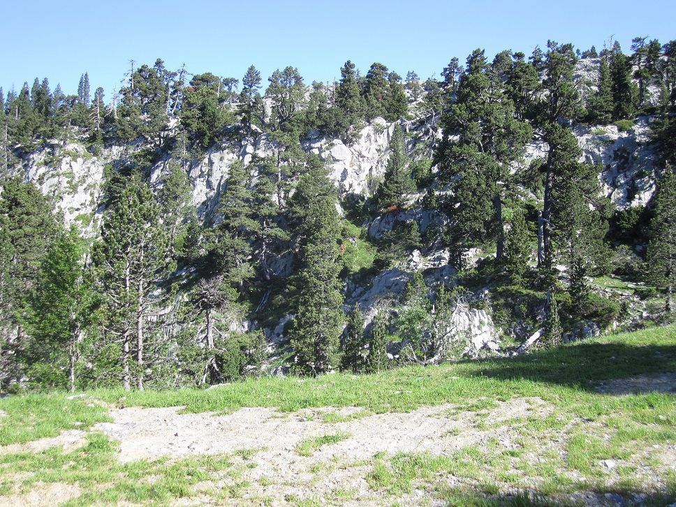 Der Weg führte über den Bergrücken links oben...Rückblick und Verschnaufen