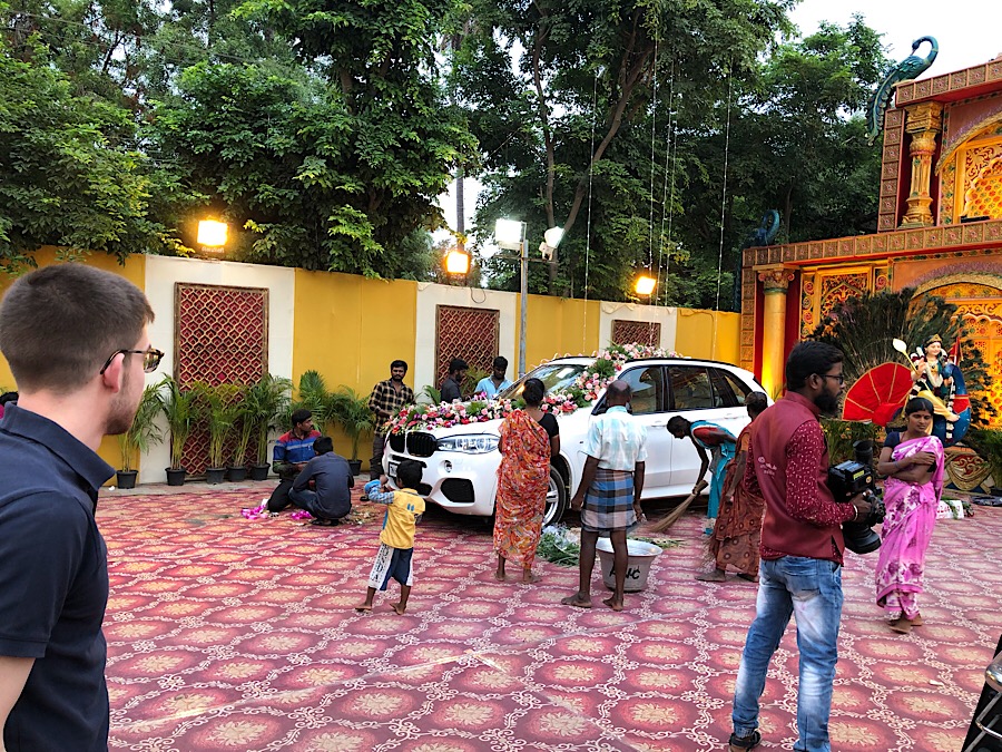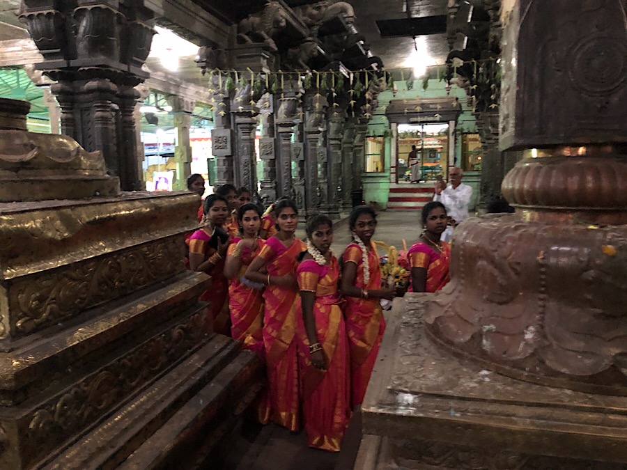 Wir wurden nach innen komplimentiert. Schuhe aus, keine Fotos. Über mehrere Kammern gelangten wir ins Allerheiligste, wo Hari in traditioneller Kleidung offenbar einen Segen von einem Hindupriester erhielt und allerlei andere Gäste sich hinter ihm anstellten. Die Luft zum Schneiden, Schweiß! Wir fühlten uns geehrt, so weit rein zu dürfen.
