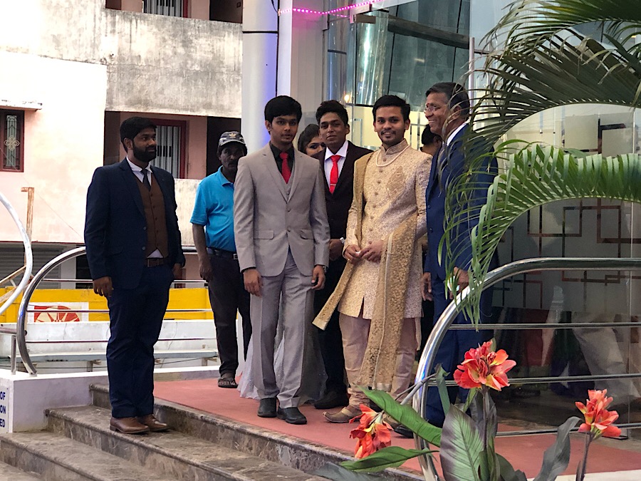 Und schliesslich ging es los! Als wir am Veranstaltungsort waren und Sathish vorfuhr, öffneten mir erstmal die uniformierten Sicherheitsleute die Tür, salutierten wie in alten Armeezeiten (und ich zurück, kann das noch!) und dann ging es auf den roten Teppich.