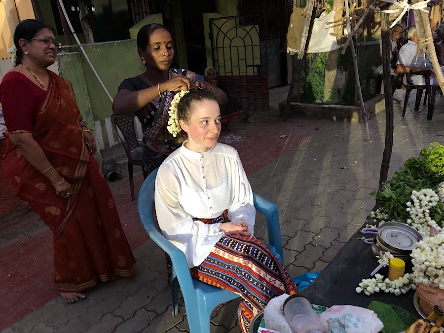 Chiara erhielt einen Blumenkranz in die Haare geflochten (gegen Gebühr).
