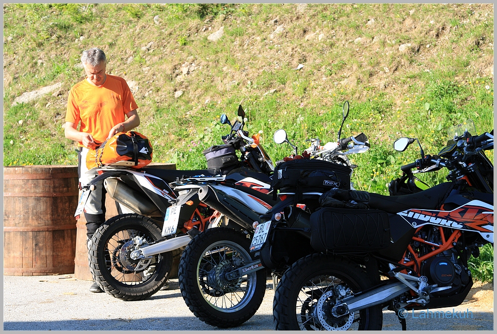 Marc, Michael (Lahmekuh) und ich fuhren Morgens nach einem Frühstück in Slowenien los. Kurz nach einer ersten Kaffeepause erreichten wir Most na Soci, wo ich in der Pension Sterk vor etlichen Jahren mehrere Tage übernachtet habe.