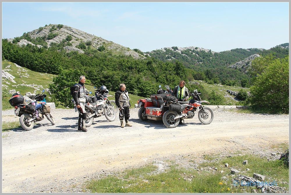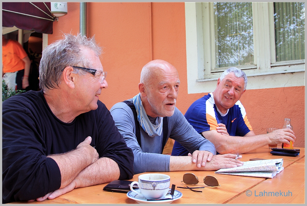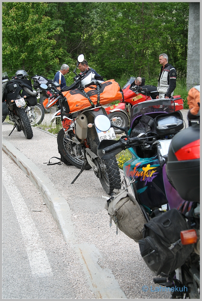 Im weiteren Tagesverlauf dann eine der ersten von mehreren Lagebesprechungen, die noch folgen sollten (im Laufe der Reise kamen da so einige zusammen), hier kurz nach dem Grenzübertritt nach Slowenien am Seebergsattel.