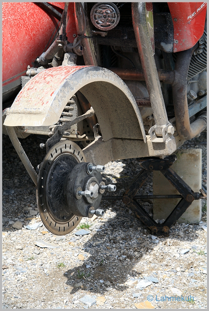 Auf dem Rückweg stellte Michael dann an seinem Gespann einen nicht konstruktionskonformen Zustand seiner Vorderradbremse fest, was zu einer Reparaturpause für den Resttag und zum Teil auch den Folgetag führte.