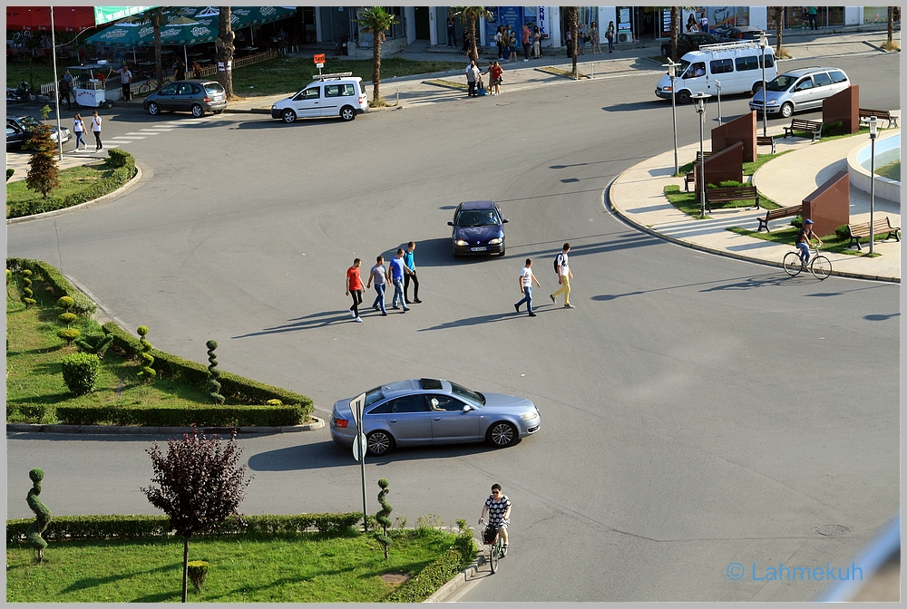 Später dann erreichten wir in Shkoder das Hotel Red Bricks, das Bernd allein schon in der Nacht zuvor getestet und für Gut befunden hatte. Letzterer flog zeitgleich von seiner Solotagestour an den Koman-Stausee kommend vor dem Hotel ein. Wir bezogen unsere Zimmer und hörten von Tornantes Michael und Alen, dass die Ankunft der Beiden sich tatsächlich erst am kommenden Tag würde realisieren lassen.