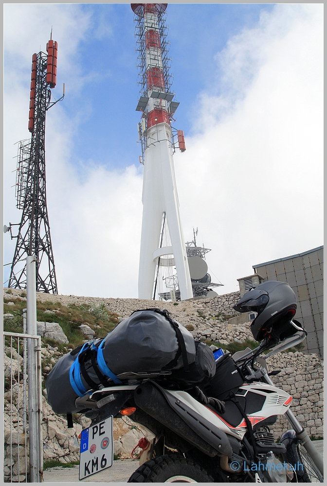 Zum Tourende hin wird auch die Bereitschaft, für einen Fotostopp zu halten, leider immer geringer. Von diesem Tag gibt es nur etwas technisches aus Slowenien (keine Ahnung, wo???) und etwas vom Mangart, als ich auf Bernd bei der bewirtschafteten Hütte auf ihn wartete.