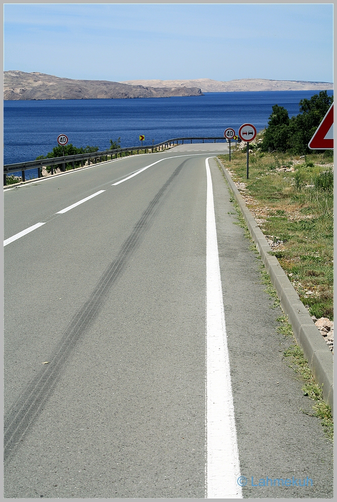 ...ging es dann in Richtung der Küstenstraße, die wir im großen und ganzen bis kurz vor Slownien dann auch nicht mehr verlassen sollten. Vorneweg: ein durch und durch fantastisches Erlebnis, eine Augenweide, ein Feuerwerk der Farben usw. usw. Ich weiß, es gibt viele andere schöne Straßen, aber diese hier hatte mich in ihren Bann gezogen.