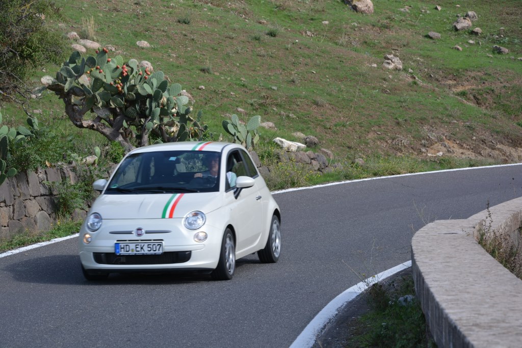Der Südzipfel Italiens scheint nach den eher was für geländetaugliche Fahrzeuge zu sein. Nach dem Motorsound im Video werkelt im Fiat ein Twinair; mit dem kräftigerem Antrieb macht Kurvenwetzen sicher Spaß. ;)