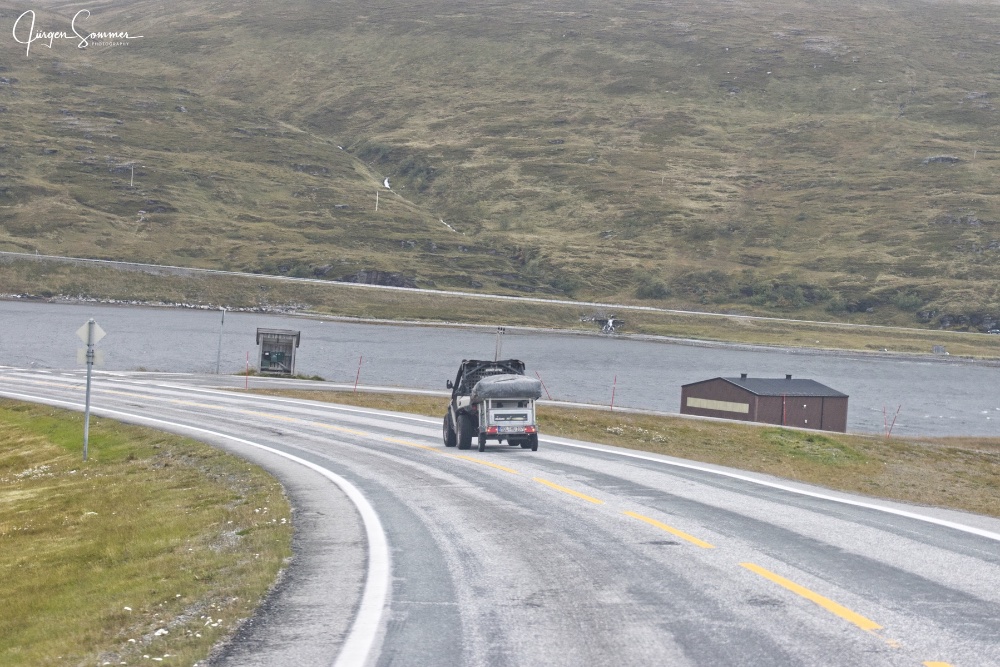 Die Bilder können da leider immer nur annähernd zeigen was mann wirklich sieht. Der nächste Augenschmaus ist kurz vor Alta. Da folgt mann dem Fluss Altaelv und dem dort von ihm geschliffenen Klamm. Dann geht es durch Alta durch und immer der E6 mitten durchs Land bis nach Olderfjord. Hier biegen wir links ab auf die E69 und fahren jetzt dem Porsangerfjord entlang. Ach ja. Ich hab die Bilder schon wieder von der Bio-Festplatte runtergeladen und sehe es vor meinem Geistigen Auge. Die Landschaft ist unbeschreiblich schön….. wenn es nicht dauernd regnen würde.