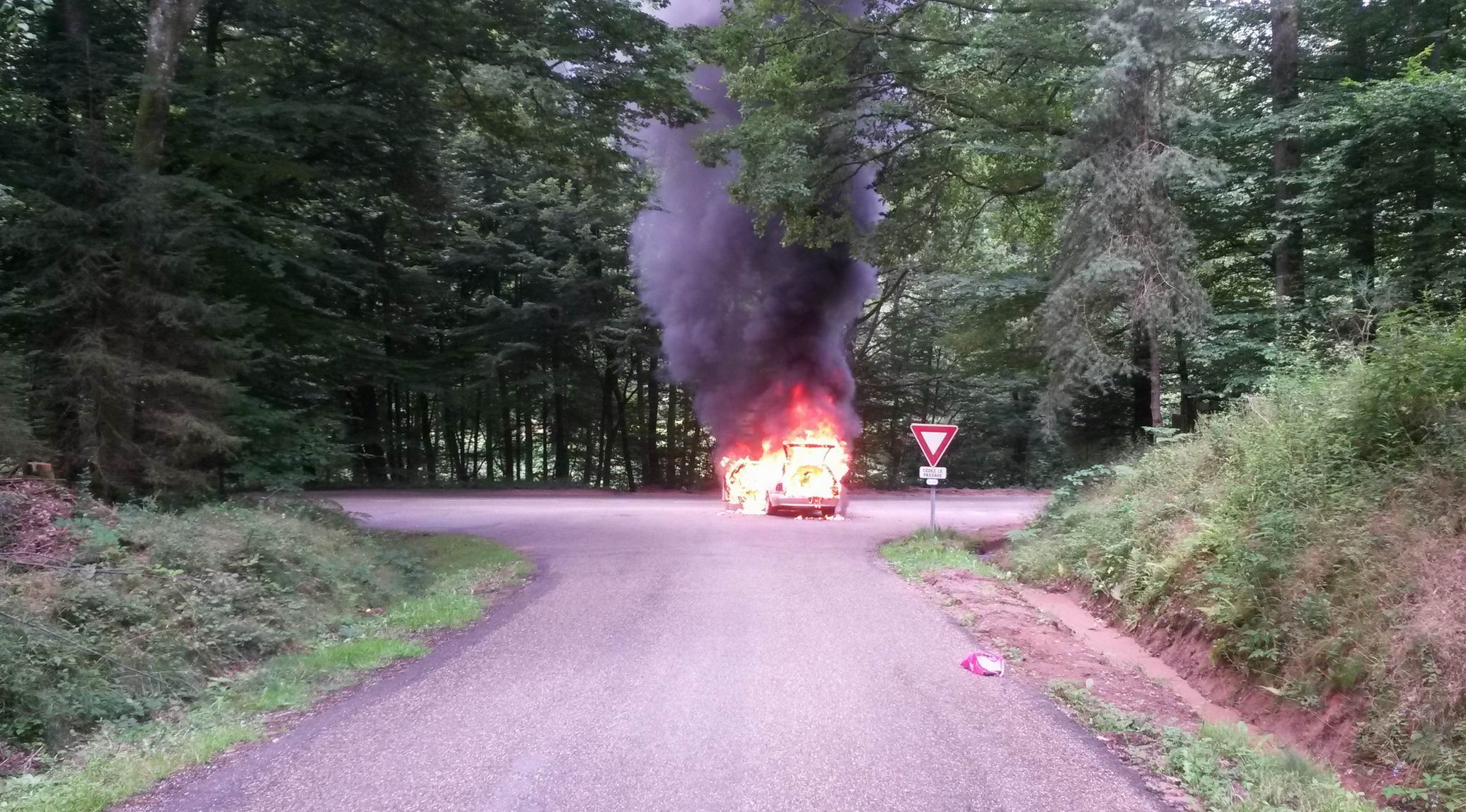 Wir standen ca. 80m vom lichterloh brennenden Wrack entfernt. Die zündenden Airbags und andere Knallkörper ließen teils rasiermesserscharfe Schrapnells durch die Luft fliegen. Eines flog uns direkt vor die Füsse. Der Besitzer des "Leuchtenden Sterns" hat sich an dem Blechteil kräftig in die Finger geschnitten. Daran wird er nicht so lange zu knabbern haben, wie an dem Umstand, die Kasko vor wenigen Monaten gekündigt zu haben.
