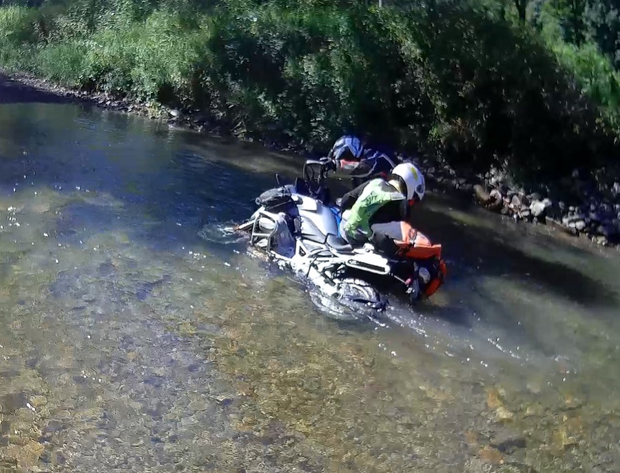 Das Detailbild ist von der 1200er GS – aber bevor drauf rumgepruegelt wird - die lag halt am laengsten im Wasser bis sie wieder stand, so dass es einfacher war davon ein Foto zu machen … . Man braucht mindestens einen Freiwilligen mehr, der ins Wasser geht um zu helfen und bei einer liegenden GS treten die Freiwilligen auch zaghafter vor.