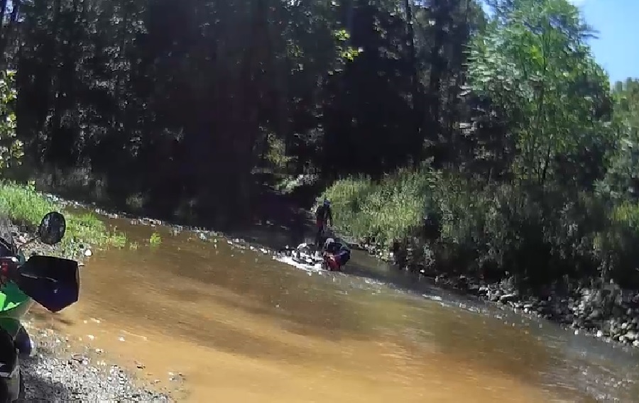 Einige Verluste waren zu verzeichnen; eine WR250 ist stromabwaerts geschwemmt worden ...