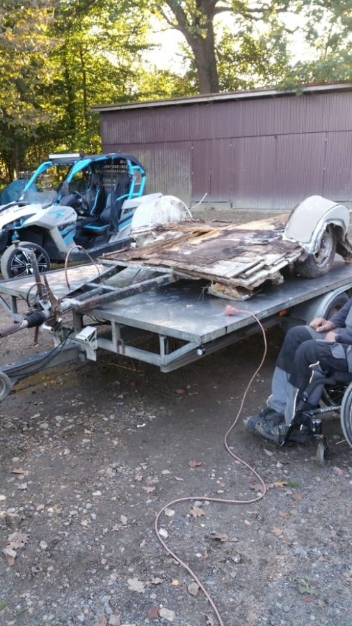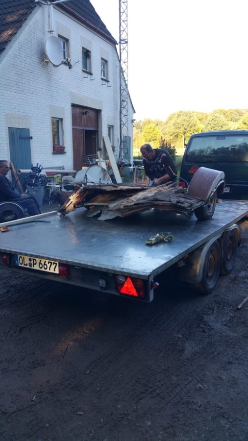 Nachdem wir das Fahrwerk auf meinem Anhänger hatten sah das schon etwas...... betrübt aus. Ich dachte erst das war ein