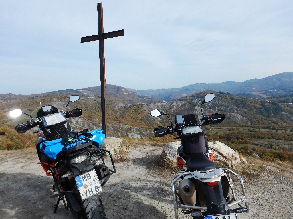 So queren wir südlich von Bobbio über die SP16 und SP 57 neuerlich einen Bergrücken in Richtung Valle Nure nach Bettola, wo wir Christian und seine bessere Hälfte Ursula in einem Café treffen wollen. Eine gut zu fahrende Naturstraße kürzt die SP 57 zwischen Peli und Mareto ordentlich ab, klar dass wir diese Passage einschlagen.