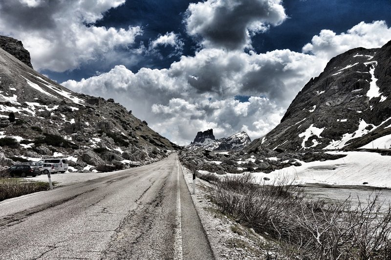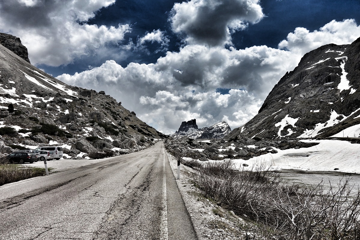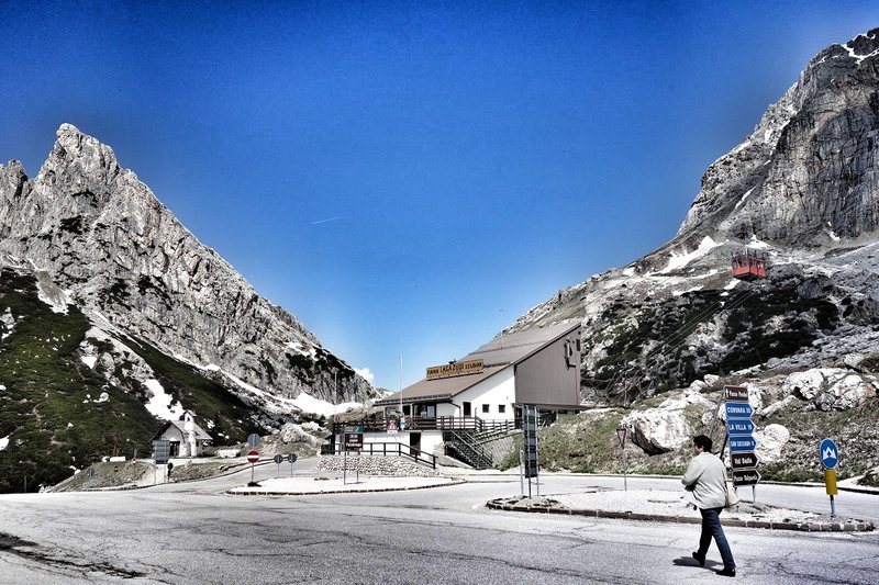 Wobei der Falzarego gern als Verbindungspass genommen wird und manchmal ziemlich viel Verkehr herrscht (B&B = Busse und Bummler).
