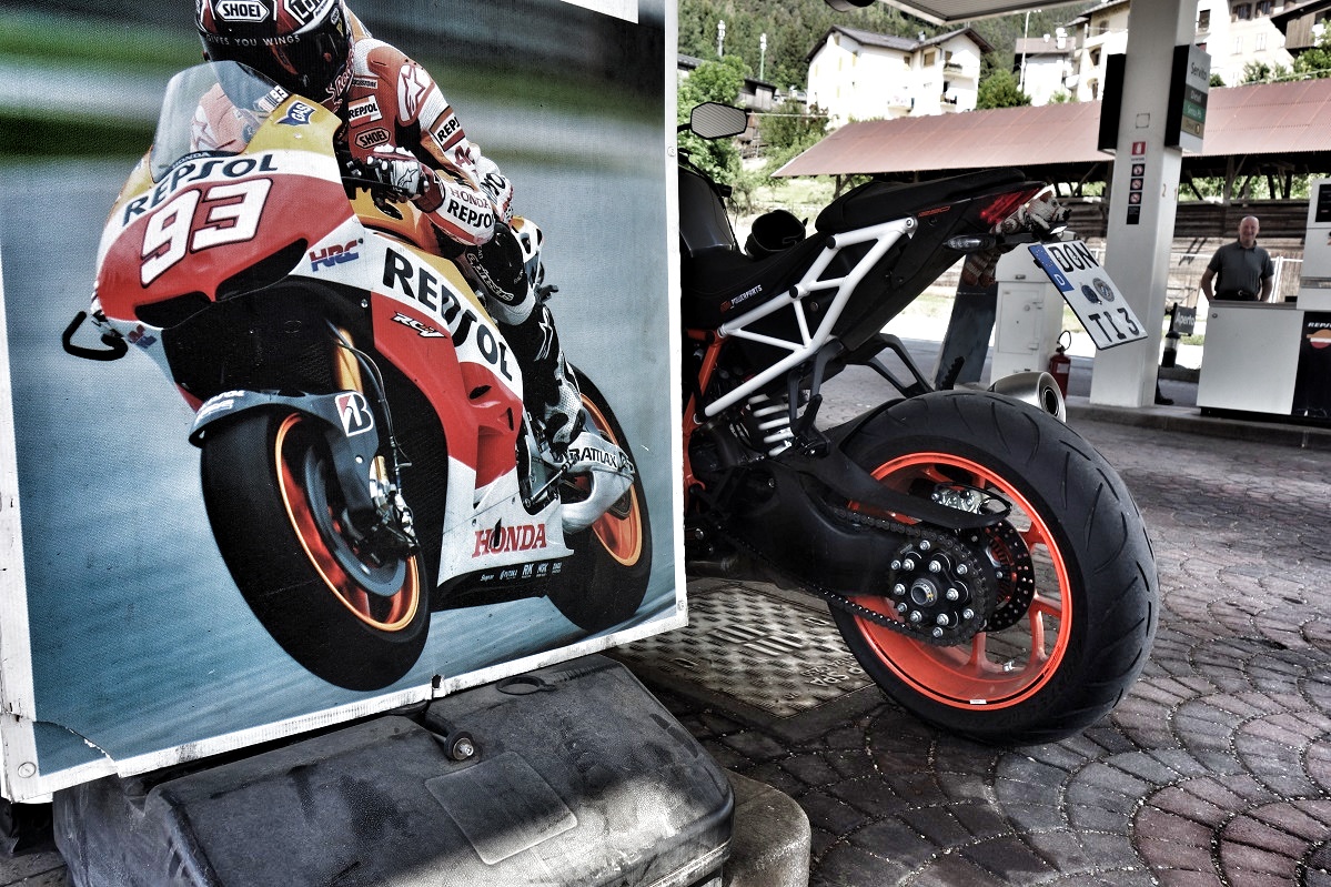 Nach einem Süßstück (mal schnell neues Wort erfunden... süßen Frühstück), füllte ich (als Pedrosa Fan) an der Honda Werkstanke Weltmeistersprit in Dörtes Tank und es ging nochmal - ein letztes mal - los.