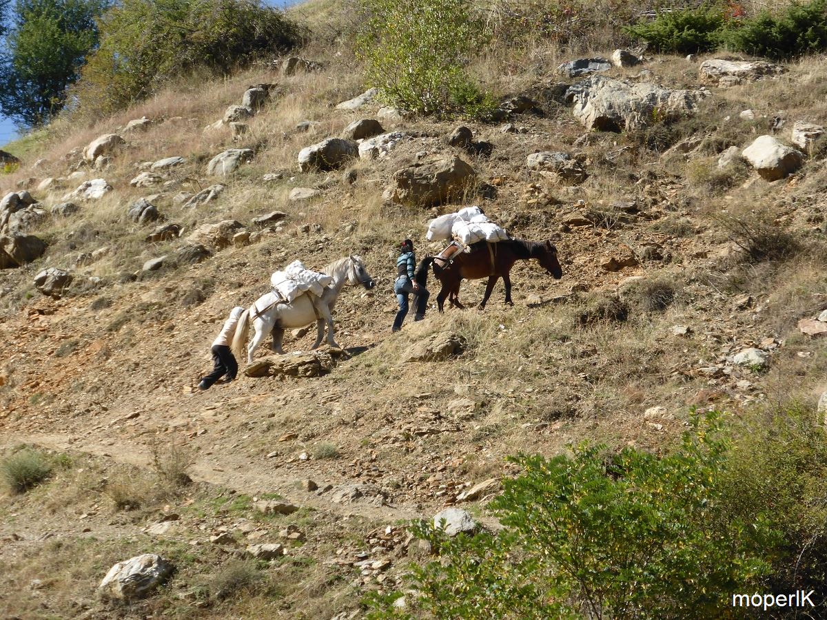 Sie haben diese vollen Säcke auf die Tragsättel gewuchtet und festgebunden, dann sind