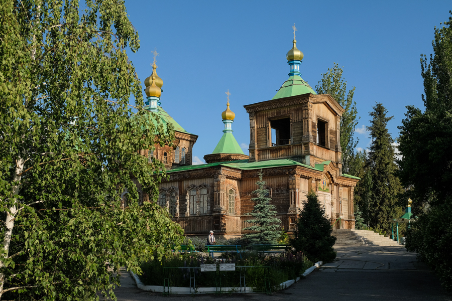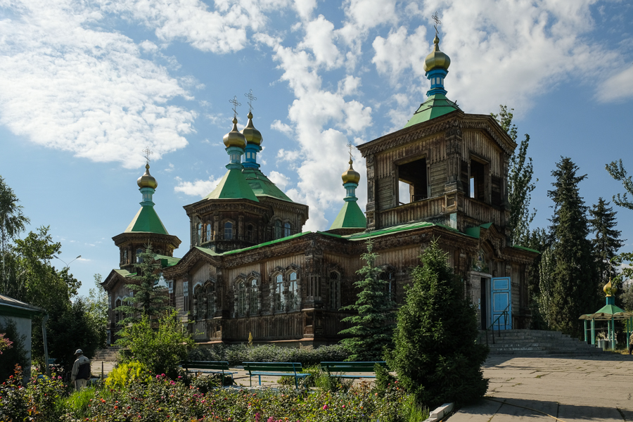 In Karakol ist auch ein bißchen Sightseeing möglich: Unter Anderem die russisch orthodoxe Kirche der Dreifaltigkeit die Ende des 19 Jahrhunderts aus Holz erbaut wurde. Die realtiv bekannte dunganschie Moschee habe ich jetzt architektonisch sind so aufregend gefunden.