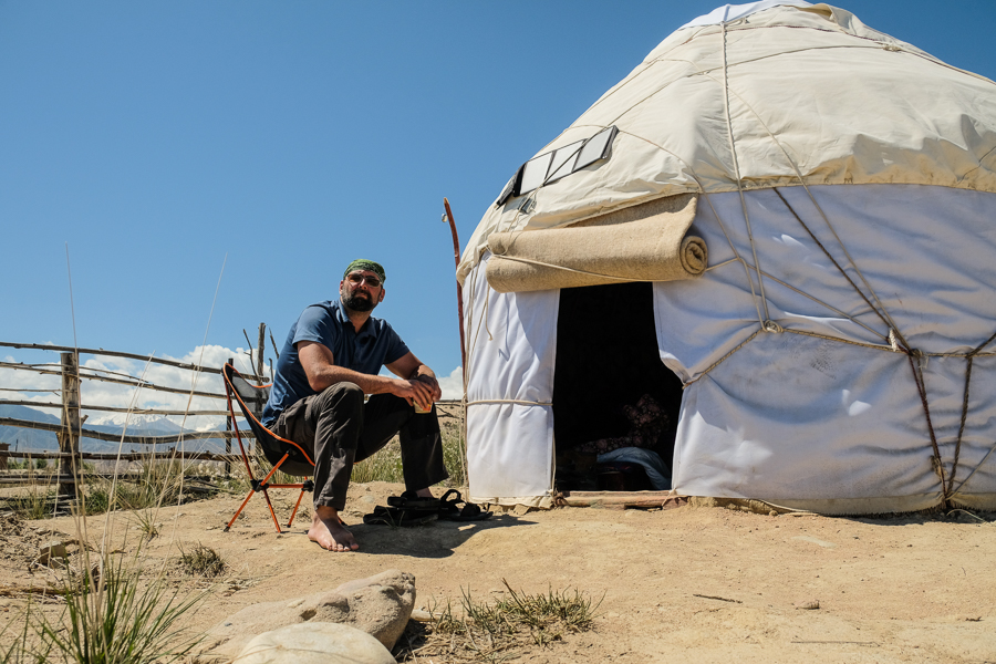 Mir wurde gesagt, dass ich heute auf jeden Fall wen in meiner Jurt zuzubekommen würde. Aber ich hatte Glück. Es ist ein netter junger alleinreisender Mann. Zu zweit, haben wir auch noch genügend Platz. Ich habe ja echt viel Zeugs mit.
