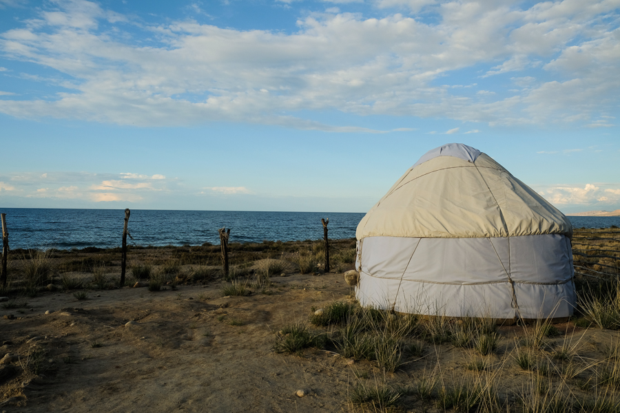 Es ist nett da, wenn auch sehr einfach. Meine Jurt hat keinen Strom, damit auch kein Licht. Meine Jurt hat auch keine Tür, sondern nur eine Matte. Aber ich habe die Jurt für mich alleine und sie ist direkt am See. Sie wollten mich schon wegschicken, da ich ich nicht reserviert hatte.