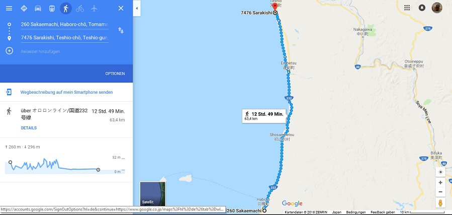 Die Fähre Tomakomai-Oarai ist mir zu riskant, da noch ein paar Taifune vom Pazifik her kommen können.