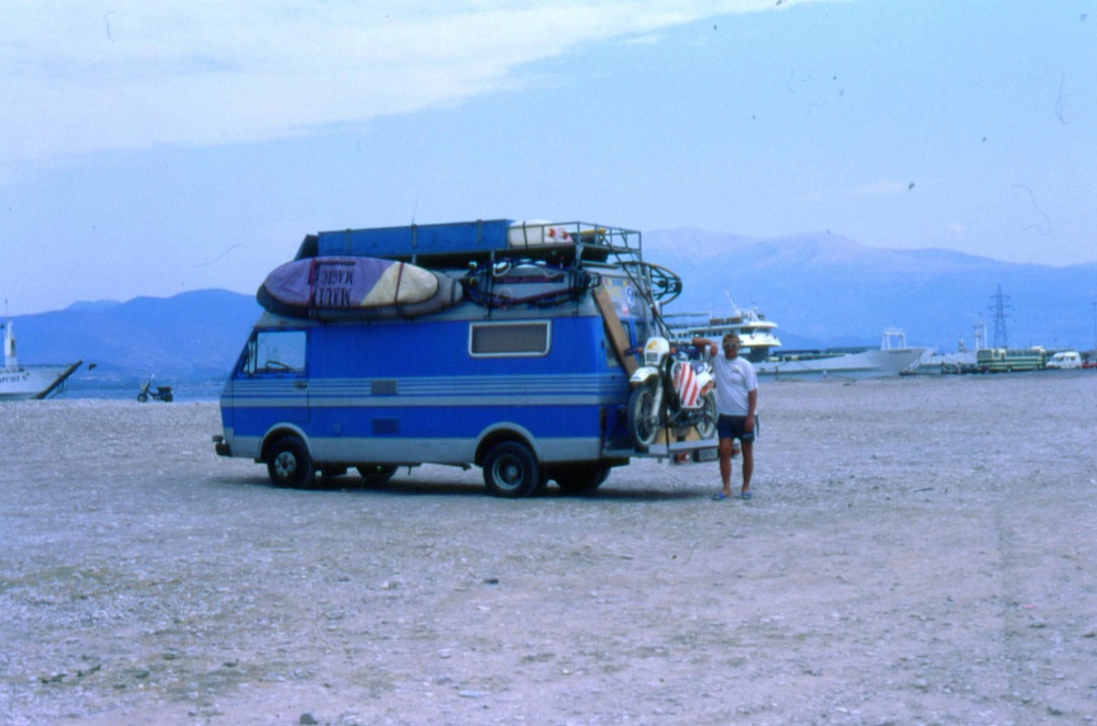 War mit dem WoMo für 8 Wochen auf der Insel Naxos zum Windsurfen, Bike natürlich mit,