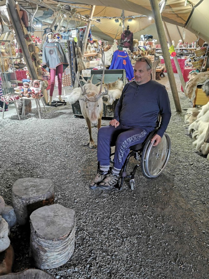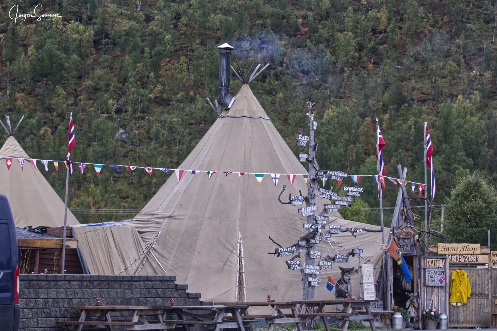 Beim Anfahren eines Parkplatzes haben wir einen Sami Shop gesehen. Na ein Souvenir muss ja mit. Hier gibt es eine Rentier Suppe. Die muss probiert werden.