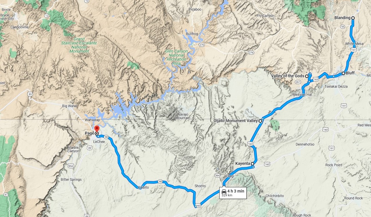 Die letzten heutigen Kilometer führen uns nach Blanding, UT.