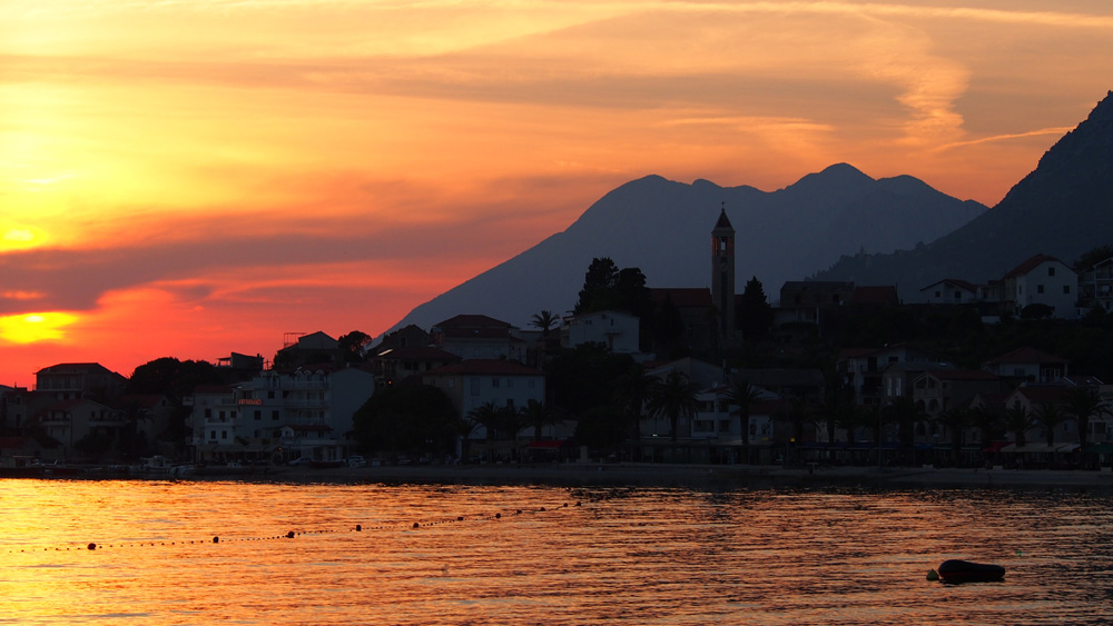 Wieder alleine fahre ich heute die 1. Etappe nach Hause. Ich plane die rund 1100km verteilt über 3 Tage , um auch noch schöne, kleine Motorradstrecken durch Montenegro, Bosnien H., Kroatien und Slowenien einbinden zu können. Es macht auch schon wieder Spaß (..nach der "Thettur")! Nach kurzem Aufenthalt an der Grenze fahre ich flüssig über Podgorica (MN) Cetinje, Grahovo (P23, schmal aber schön), Trebinje (BiH), Metkovic (Cro) bis Gradac an der Makarska- Riviera. Im vorsaisonbedingt noch relativ ruhigen Ort finde ich schnell ein preiswertes aber schönes Zimmer mit Balkon & Meerblick. Am leeren Sandstrand gebadet, an der Promenade typisch kroatisch (?) gut Fisch gegessen- durch's sehr nette Gradac "geknipst"- kurz ein perfekter Reisetag!