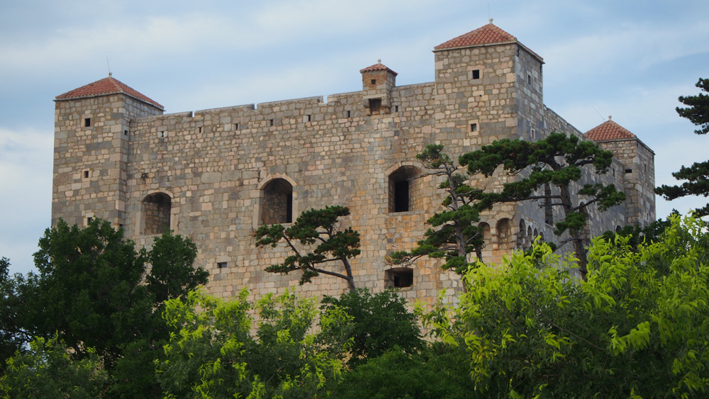 ..immer wieder witzig die Anheuerungsversuche der Zimmervermieter am „Straßenstrich“- aber praktisch. Da ich ein vermeintlich in der Hirnkarte gespeichertes Quartier nicht mehr finde, nehme ich den nächstbesten der mir fast vor's Motorrad springt. Ergebnis: Zimmer passt, Leute sehr nett ! Am letzten Abend in Kroatien leiste ich mir die später gar nicht so teure Konoba in der Festung Nebaj. Der Marsch zurück zum Zimmer ist steil, tut aber den Füßen und dem Schlaf nach den langen Fahrtagen sehr gut !
