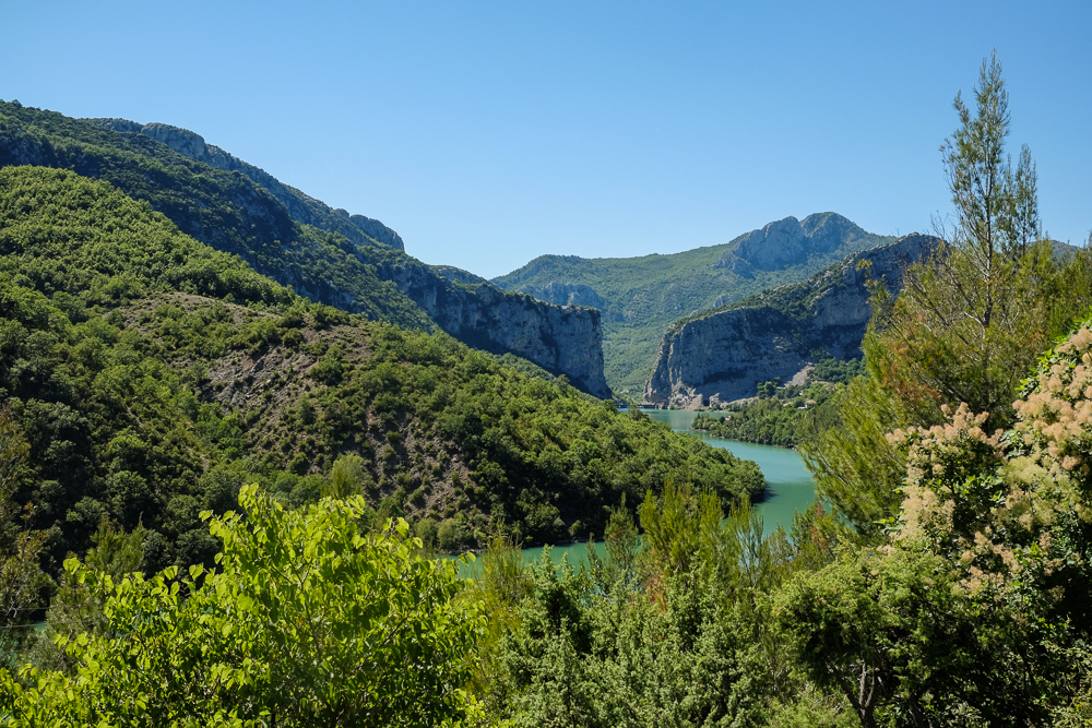 Am 2. Tag darf ich wieder einmal „meine Traumstrecke“ die Magistrale, meist direkt am Meer, Richtung Senj genießen. Die abenteuerliche Straße auf den Sv. Jure im Biokovo- NP (Tip!) muß ich heuer zwar auslassen, die sehr wenig befahrene Strecke besonders bei Makarska sowie später nach Starigrad/Pakl. Richtung Norden, lassen das Bikerherz trotzdem wieder höherschlagen. Mein xter Versuch, die Krker- Wasserfälle auf einer Durchreise zu sehen schlagen, da überlaufen, wieder fehl. Dafür mache ich in Skradin Halt, für Burger(!?), Pause und Rundgang. Am langen Kiesstrand der Paklenica- Flussmündung bietet sich die wahrscheinlich letzte Abkühlung in der Adria an, der ich nicht widerstehe.