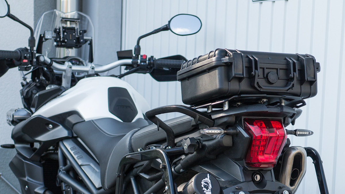 Danke Ingo, freut mich wenns gefällt und nicht nur nervt oder abschreckt. Ich hab auf meinem Tiger einen kleinen Hartplastikkoffer von XCase. Das Köfferchen sieht niedlich aus (nicht nach Topcase) und bietet Platz für mein Mittagessen. :mrgreen: Langer Rede kurzer Sinn, ich hab mir jetzt eine grössere Variante bestellt die ich auch als Handgepäck in den Flieger mitnehmen kann. Ich werde irgendwie versuchen den Koffer auf meiner Gepäckbrücke zu befestigen so wie ich jetzt mit dem kleinen Köfferchen auch gemacht habe. Werde sicher berichten wenn's soweit ist. Hier noch ein Foto wie's aktuell aussieht.