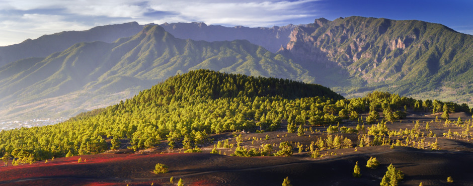 der Insel auf die mit Kiefern bewaldeten Berghänge von Barlovento, wo die bis zu