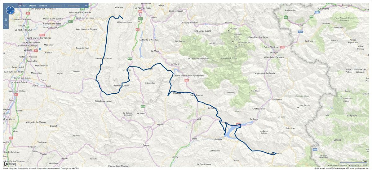 Barcolonette - Col de Pontis - Col Lebraut - Col de Moissière - Col du Noyer - Col de Rioupes - Col St.-Sébastien près Mens - Col du Prayet - Col de Menée - Col de Rousset - Villard-de-Lans