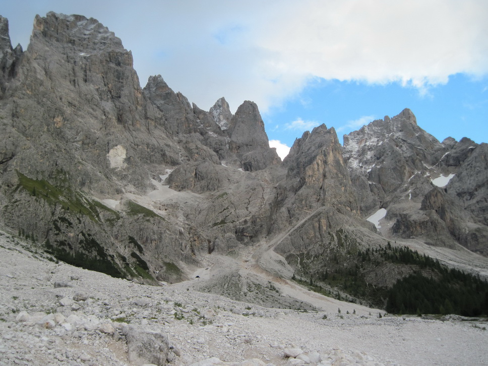 Also kurz vor 1800 Uhr den Passo Valles hinunter Richtung Passo Rolle, aber schon vor der Kreuzung, kurz nach den letzten