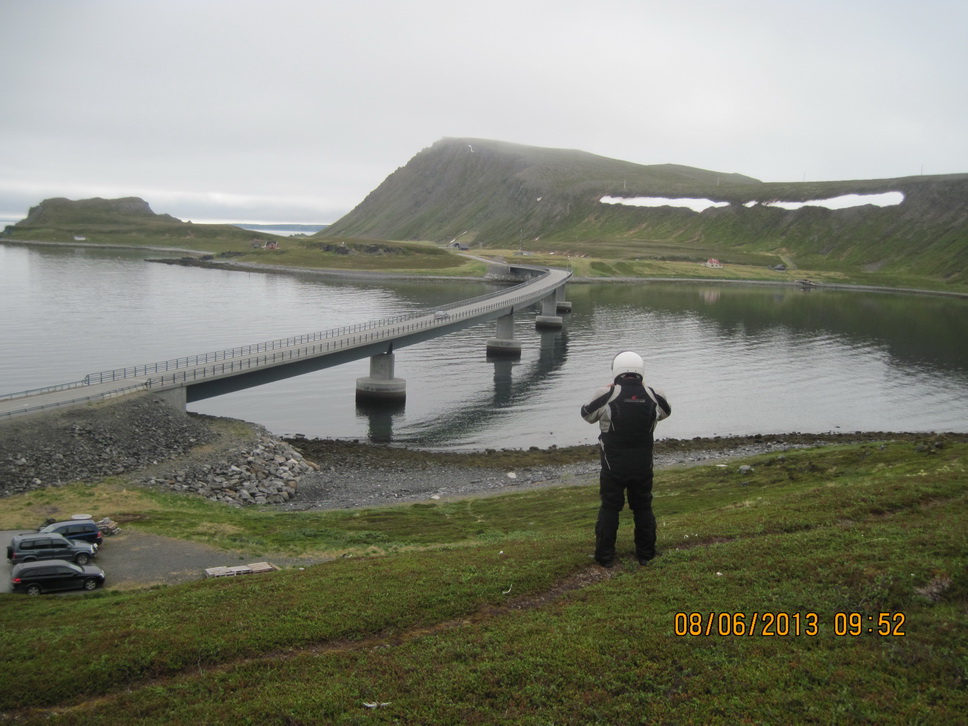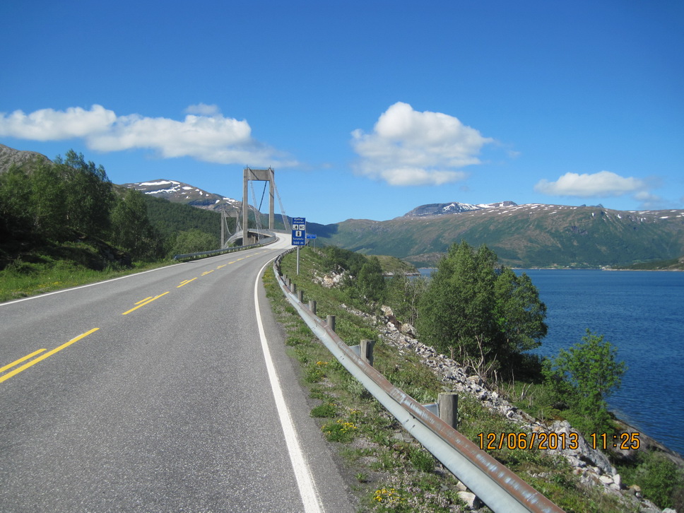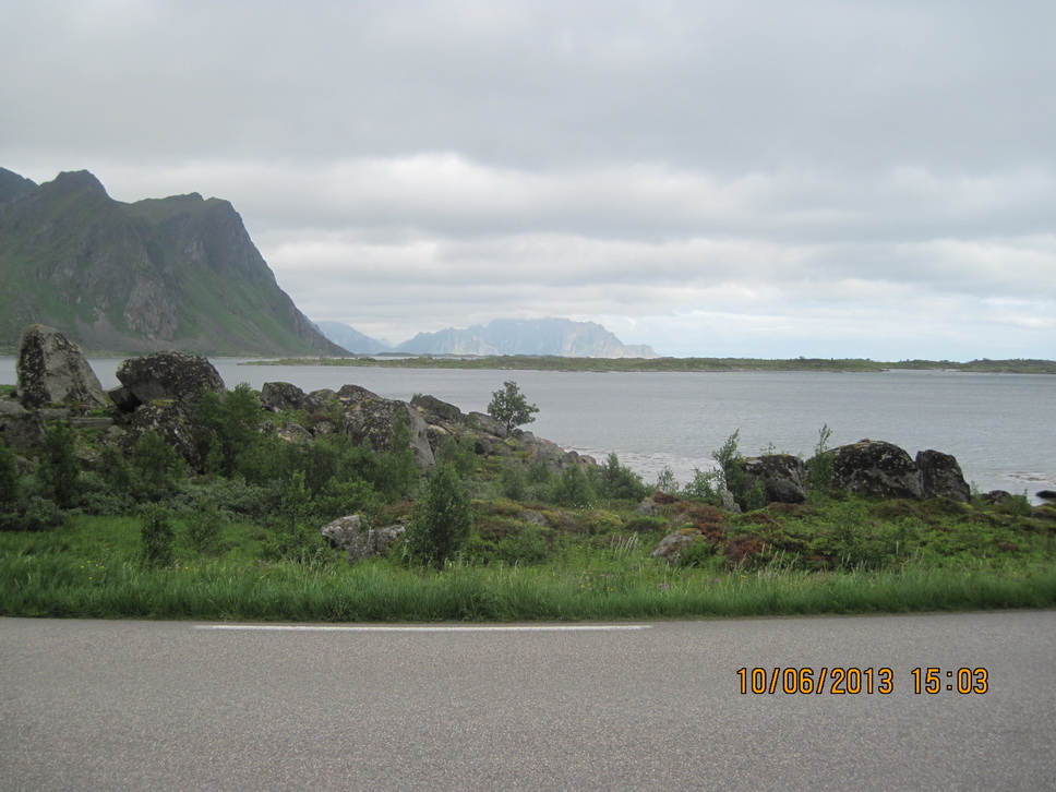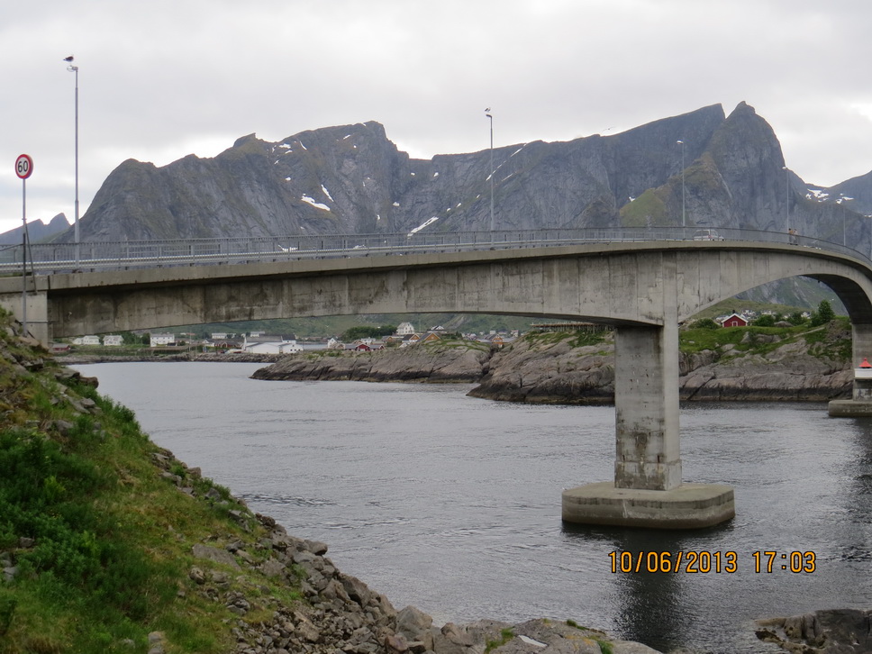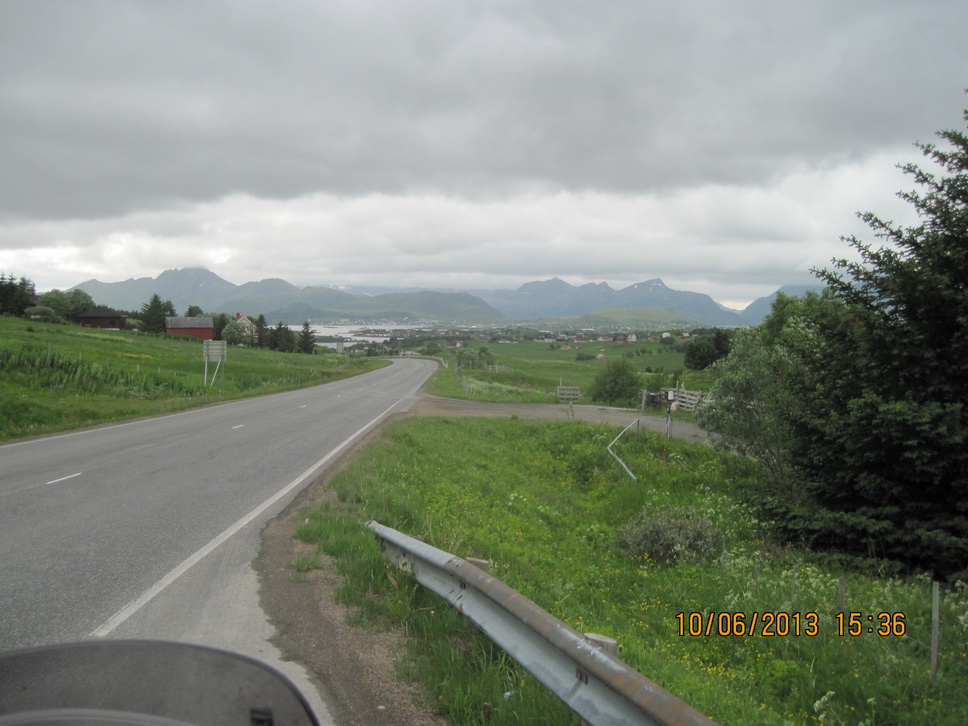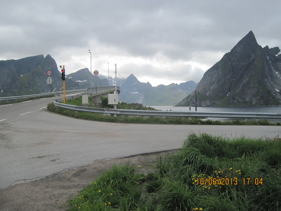 Der E10 entlang bis Steinsland, wo wir die Brücke bei Ströhmendem Regen nahmen.