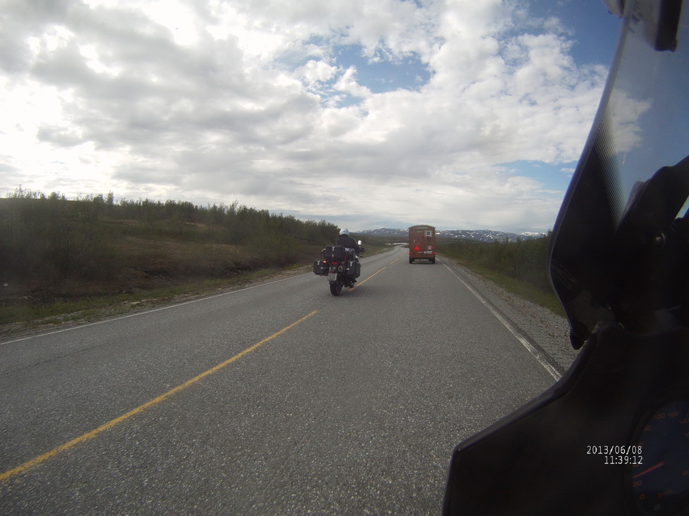 danach folgte wir der E6 Richtung Südwesten, wo wir einen Schweizer mit Traktor und selbst gebautem Hänger überholten,