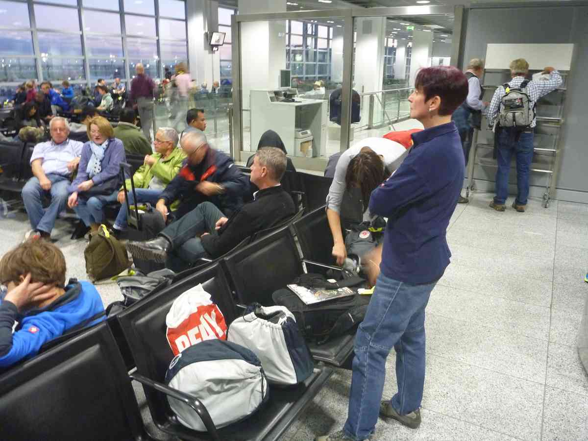 Nach gefühlten 2km und einer kleinen Bahnfahrt hatten wir das richtige Terminal erreicht. Jetzt noch schnell durch die Personenkontrolle und dann ab in den Flieger. Aber weit gefehlt, man benutzt inzwischen hochmoderne Ganzkörperscanner und dieser schien heute einen schlechten Tag zu haben. Die Schlange davor war so lang, das ein Teil der Passagiere wieder durch die alten Schleusen musste. Wir erwischten leider das hochmoderne Gerät. Ich schlüpfte ohne Probleme hindurch, aber bei Nicole versagte die Technik und so wurde sie aufwendig von Hand kontrolliert. Ich glaube, es ist inzwischen einfacher illegal nach Deutschland einzureisen als das Land legal zu verlassen.