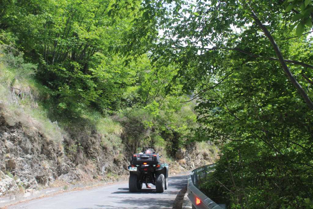 Viele Kurven zu fahren immer wieder rauf und runter. Die Hänge waren Bewaldet und es steht alles in voller Blüte.