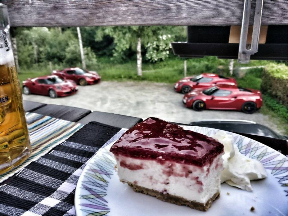 Klasse Kuchenfoto mit den roten Alfas im Hintergrund. Momentan kann ich mich nicht entscheiden, was ich leckerer finde. ;)