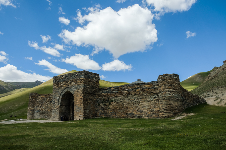 Eine ehemalige Karawanserei, einer der wenigen historischen Sehenswürdigkeiten in Kirgistan. Der Weg hin war wunderschön. Das Gebäude ist wunderschön gelegen, gibt aber selber nicht so viel her. Dann wollten sie wieder Mal 100 Som von mir weil ich kein Kirgise bin. Kirgisen zahlen 20 Som. Ist jetzt nicht viel Geld, aber 5 Mal so viel sehe ich nicht ein. Im Gebäude gibt es nichts sonderliches zu sehen. Ich habe dann 50 Som bezahlt. Soviel war es mir wert. Ansonsten gibt's relativ viele kirigisische Touristen, Ausländer so gut wie keine. Dafür stehen Dutzende Jurten rum, die alle leer stehen.