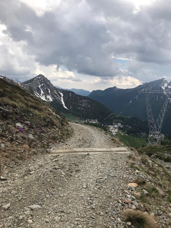 In letzten Abschnitt folgten gefühlt 100 steile Mini-Serpentinen, bis wir drunten waren. Ein Autofahrer kam grade vorbei und fragte, ob wir aus Foppolo rübergefahren seien. Er konnte es dann nicht glauben. Wir waren zufrieden mit der Tagesleistung.